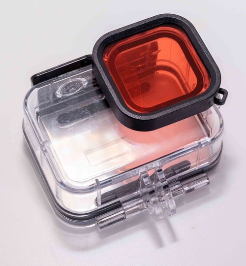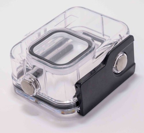 This bright orange floating foam case has a couple of great advantages. First it keeps your GoPro safe in the event of a fall from a great height. Second it floats and won’t allow your camera to sink. Third it can be seen from quite a long way away given its bright colour. You can still access the screen and buttons while it is on.