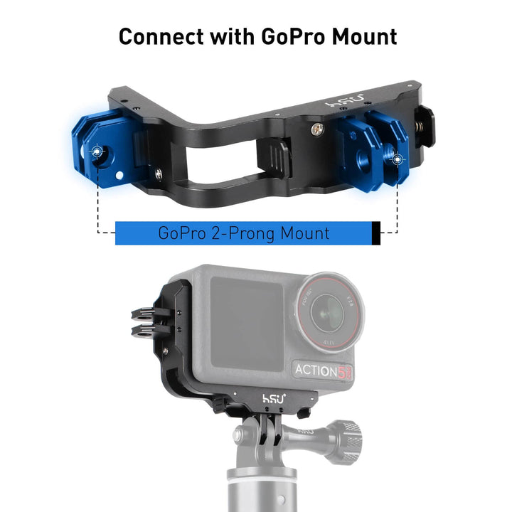 HSU 90 Degree Aluminum Vertical Bracket Adapter Elbow Mount for DJI Osmo Action 3/4/5 Pro, Magnetic Latch Adapter with 1/4"-20 Screw Hole and GoPro Mount