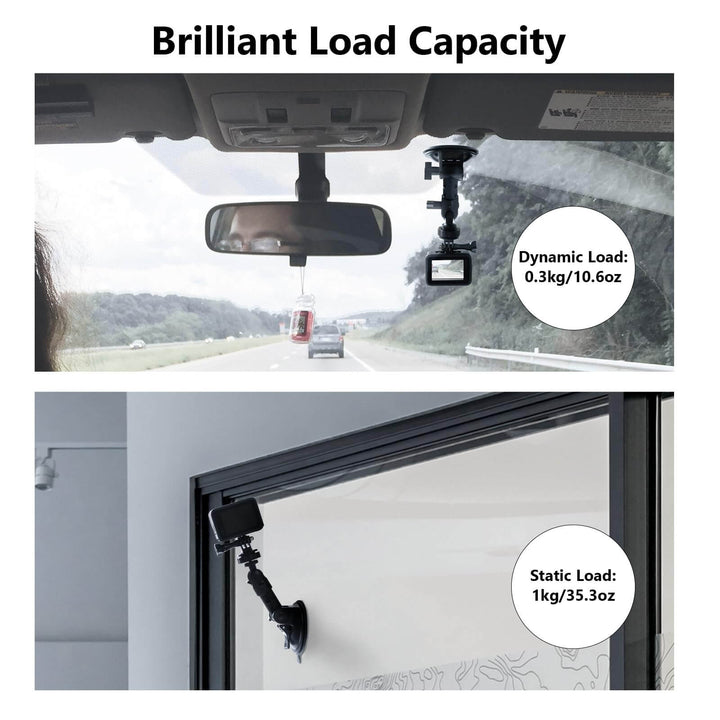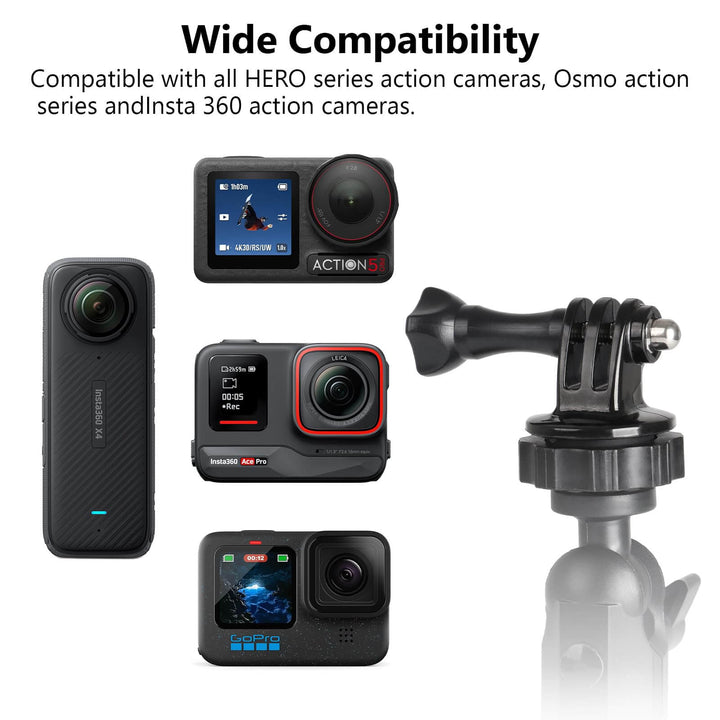 • For Action Camera: Equipped with 1/4"- 20 camera mount and tripod mount adapter. The suction cup mount is compatible with all GoPro models, GoPro Hero 13 12 11 10 9 8 7 6 5 GoPro Max Insta360 DJI Osmo Action Pocket AKASO, and most action cameras